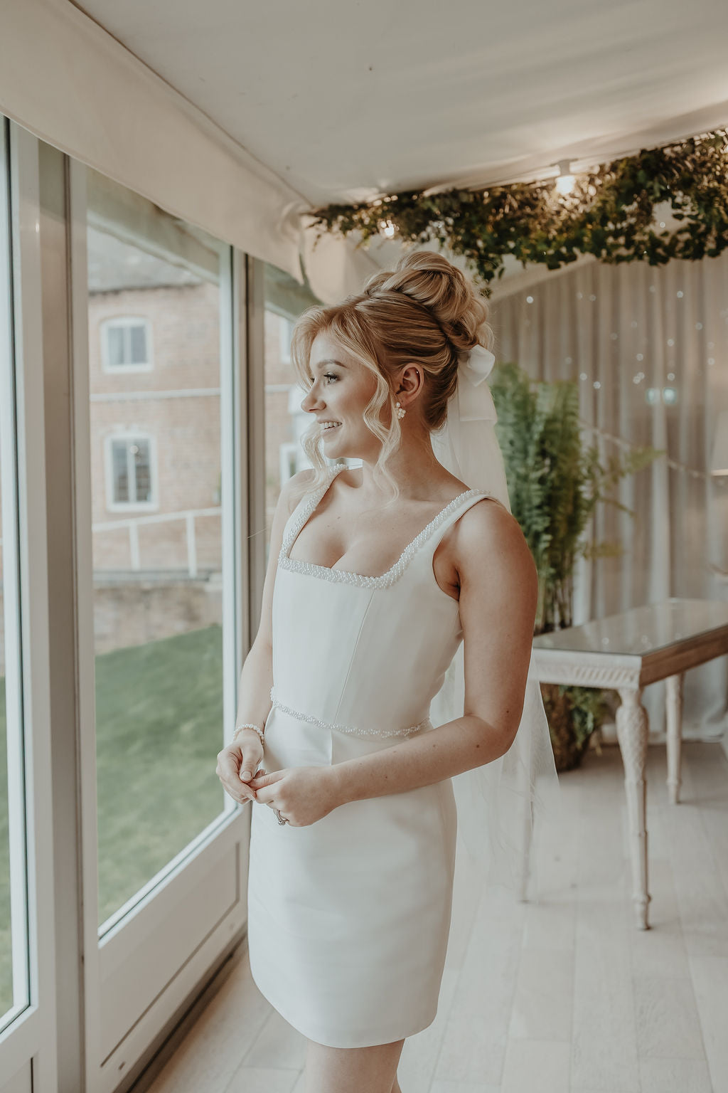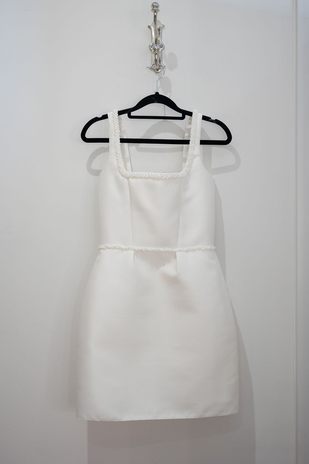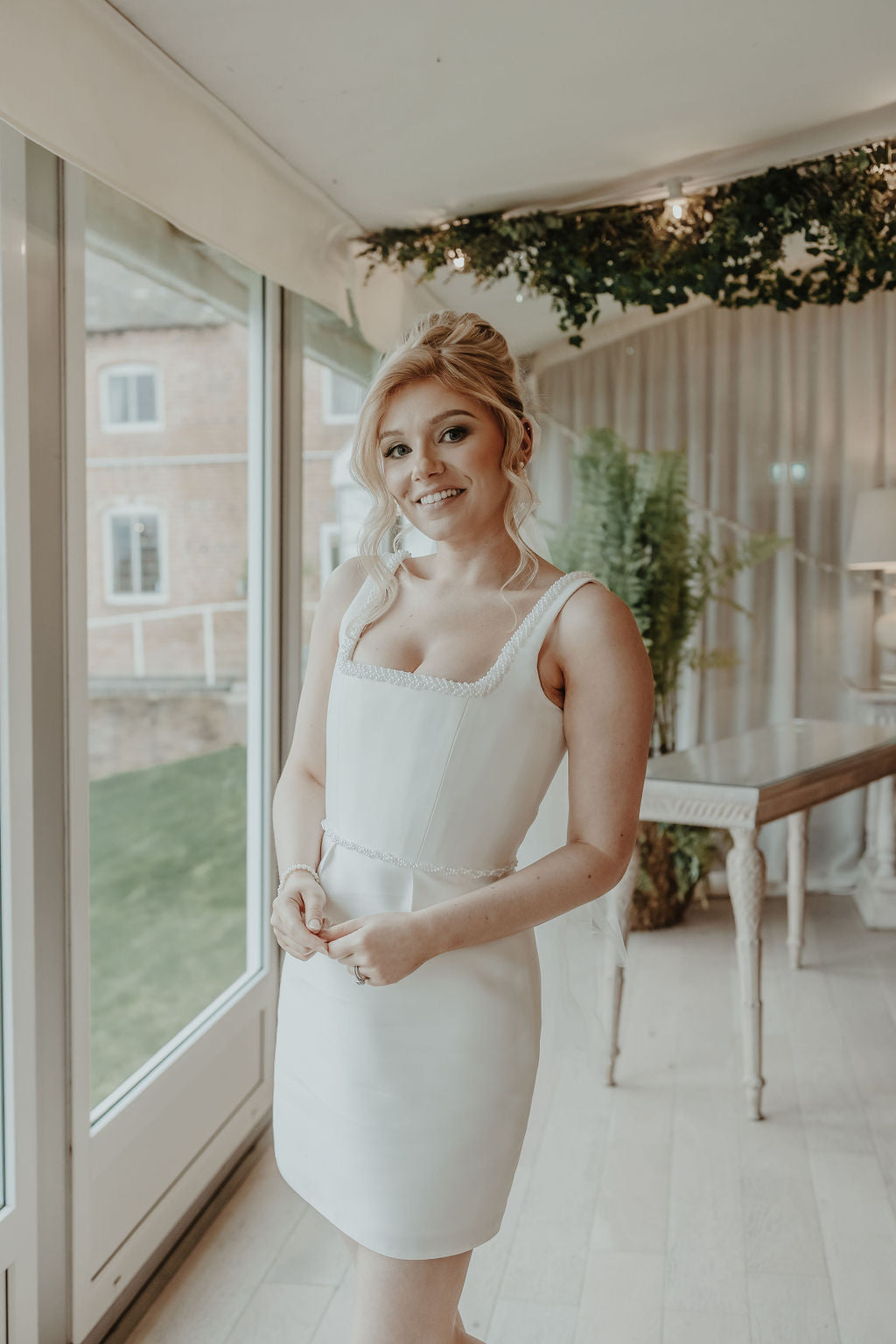 Lola is a sophisticated dress that exudes elegance and style. With its plaited pearl waist and neckline detail, it adds a touch of glamour to the outfit. The square neckline and pleats in the skirt at the waist create a flattering silhouette, while the straight skirt mini dress adds a modern edge. Perfect for any occasion, Lola is a must-have in your wardrobe, especially to party away the evening of your big day.
